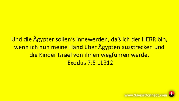 Und die Ägypter sollen's innewerden, daß ich der HERR bin, wenn ich nun meine Hand über Ägypten ausstrecken und die Kinder Israel von ihnen wegführen werde. -Exodus 7:5 L1912