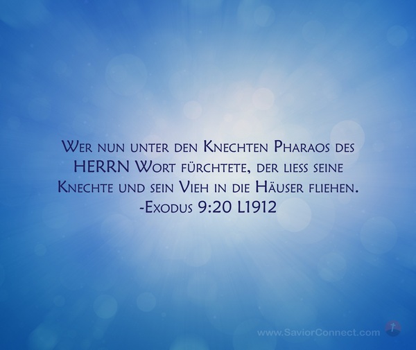 Wer nun unter den Knechten Pharaos des HERRN Wort fürchtete, der ließ seine Knechte und sein Vieh in die Häuser fliehen. -Exodus 9:20 L1912