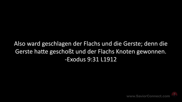 Also ward geschlagen der Flachs und die Gerste; denn die Gerste hatte geschoßt und der Flachs Knoten gewonnen. -Exodus 9:31 L1912