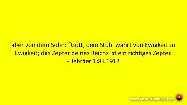aber von dem Sohn: “Gott, dein Stuhl währt von Ewigkeit zu Ewigkeit; das Zepter deines Reichs ist ein richtiges Zepter. -Hebräer 1:8 L1912