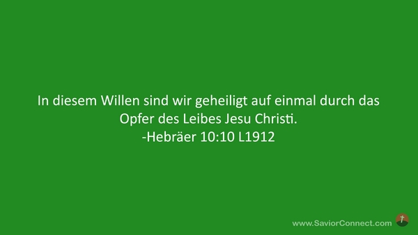 In diesem Willen sind wir geheiligt auf einmal durch das Opfer des Leibes Jesu Christi. -Hebräer 10:10 L1912
