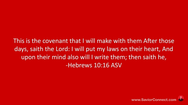 Das ist das Testament, das ich ihnen machen will nach diesen Tagen”, spricht der HERR: “Ich will mein Gesetz in ihr Herz geben, und in ihren Sinn will ich es schreiben, -Hebräer 10:16 L1912
