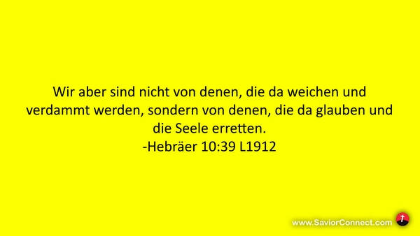 Wir aber sind nicht von denen, die da weichen und verdammt werden, sondern von denen, die da glauben und die Seele erretten. -Hebräer 10:39 L1912