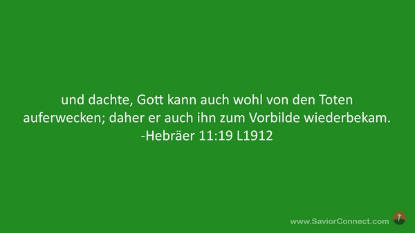 und dachte, Gott kann auch wohl von den Toten auferwecken; daher er auch ihn zum Vorbilde wiederbekam. -Hebräer 11:19 L1912