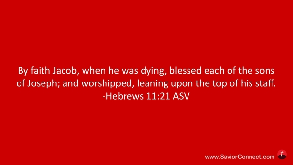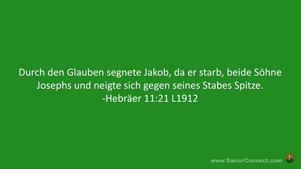 Durch den Glauben segnete Jakob, da er starb, beide Söhne Josephs und neigte sich gegen seines Stabes Spitze. -Hebräer 11:21 L1912