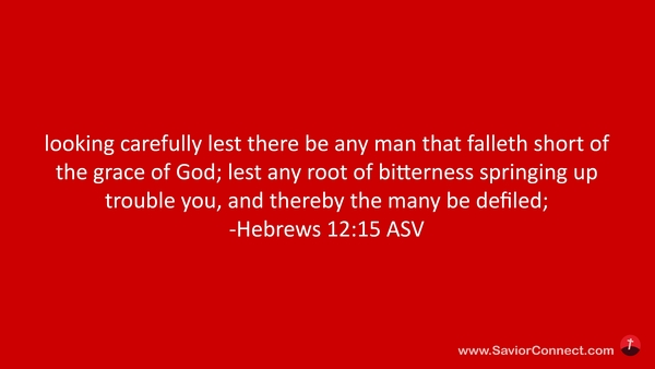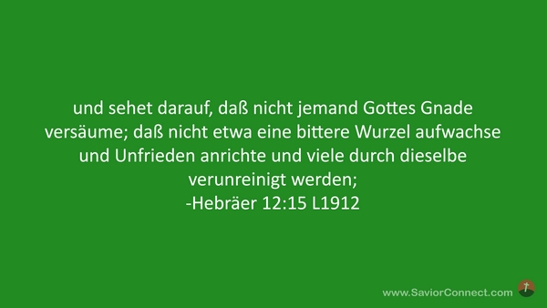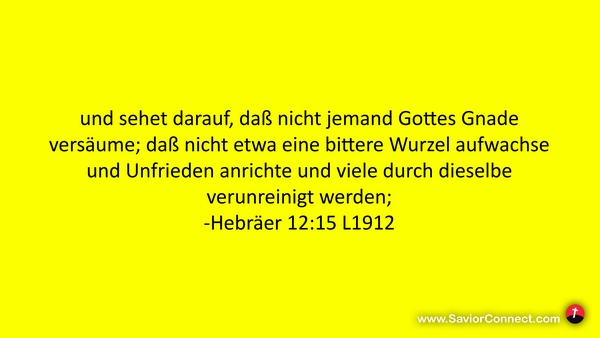 und sehet darauf, daß nicht jemand Gottes Gnade versäume; daß nicht etwa eine bittere Wurzel aufwachse und Unfrieden anrichte und viele durch dieselbe verunreinigt werden; -Hebräer 12:15 L1912