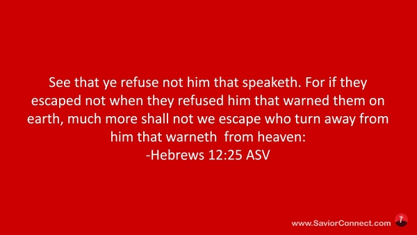 Sehet zu, daß ihr den nicht abweiset, der da redet. Denn so jene nicht entflohen sind, die ihn abwiesen, da er auf Erden redete, viel weniger wir, so wir den abweisen, der vom Himmel redet; -Hebräer 12:25 L1912