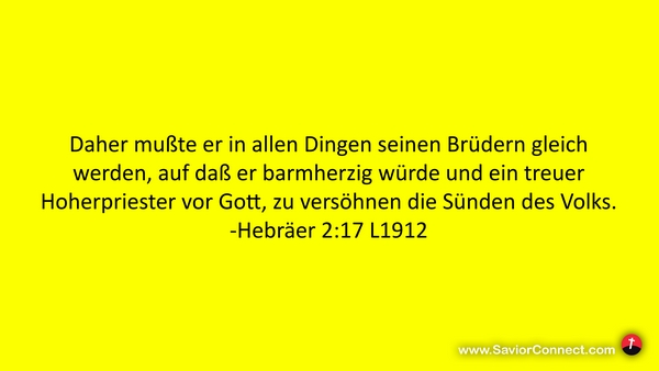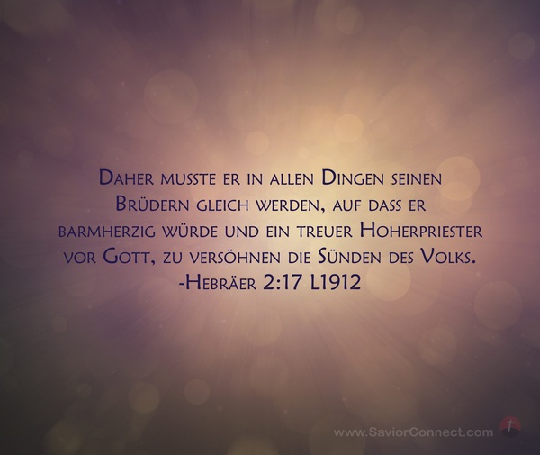 Daher mußte er in allen Dingen seinen Brüdern gleich werden, auf daß er barmherzig würde und ein treuer Hoherpriester vor Gott, zu versöhnen die Sünden des Volks. -Hebräer 2:17 L1912