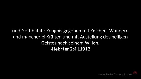 und Gott hat ihr Zeugnis gegeben mit Zeichen, Wundern und mancherlei Kräften und mit Austeilung des heiligen Geistes nach seinem Willen. -Hebräer 2:4 L1912