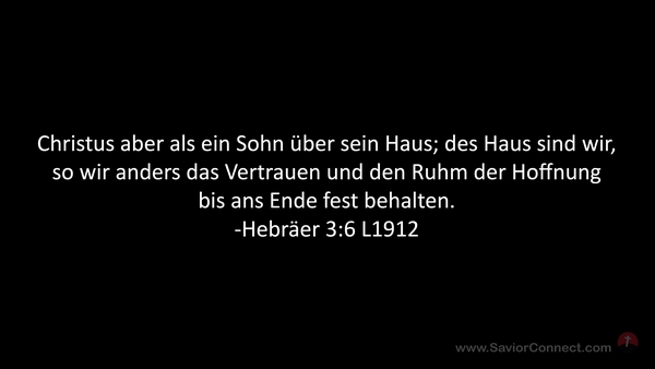 Christus aber als ein Sohn über sein Haus; des Haus sind wir, so wir anders das Vertrauen und den Ruhm der Hoffnung bis ans Ende fest behalten. -Hebräer 3:6 L1912