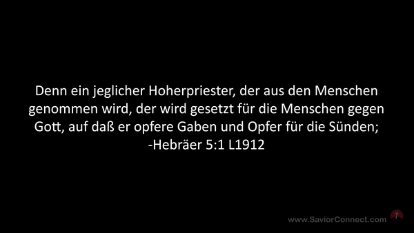 Denn ein jeglicher Hoherpriester, der aus den Menschen genommen wird, der wird gesetzt für die Menschen gegen Gott, auf daß er opfere Gaben und Opfer für die Sünden; -Hebräer 5:1 L1912