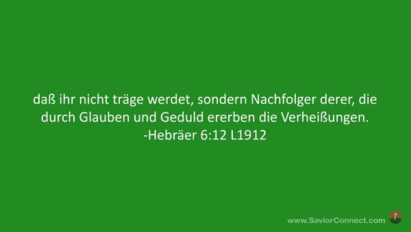 daß ihr nicht träge werdet, sondern Nachfolger derer, die durch Glauben und Geduld ererben die Verheißungen. -Hebräer 6:12 L1912
