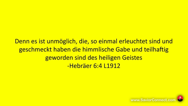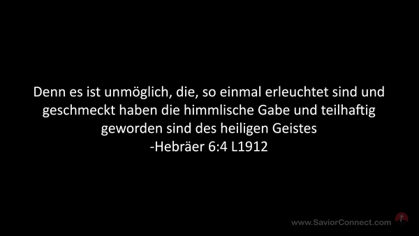 Denn es ist unmöglich, die, so einmal erleuchtet sind und geschmeckt haben die himmlische Gabe und teilhaftig geworden sind des heiligen Geistes -Hebräer 6:4 L1912