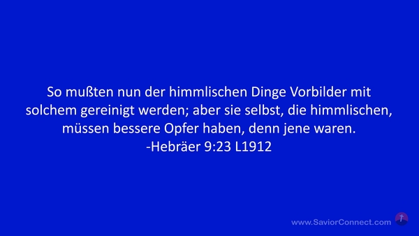 So mußten nun der himmlischen Dinge Vorbilder mit solchem gereinigt werden; aber sie selbst, die himmlischen, müssen bessere Opfer haben, denn jene waren. -Hebräer 9:23 L1912