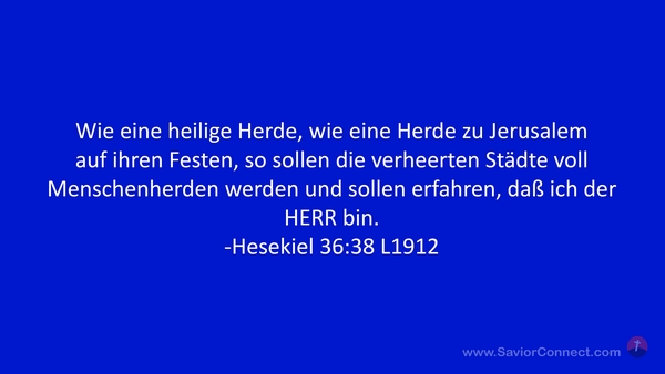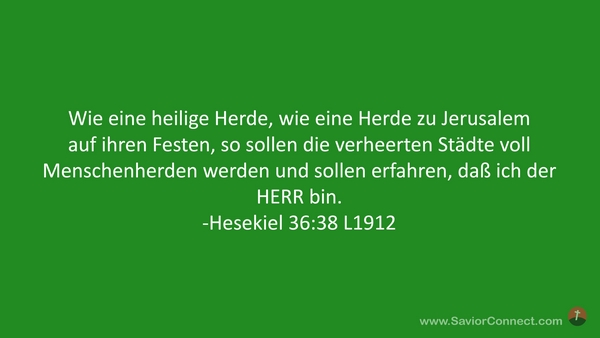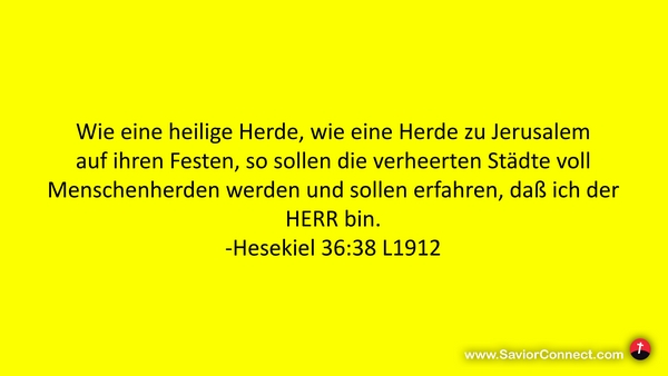 Wie eine heilige Herde, wie eine Herde zu Jerusalem auf ihren Festen, so sollen die verheerten Städte voll Menschenherden werden und sollen erfahren, daß ich der HERR bin. -Hesekiel 36:38 L1912