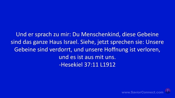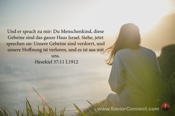 Und er sprach zu mir: Du Menschenkind, diese Gebeine sind das ganze Haus Israel. Siehe, jetzt sprechen sie: Unsere Gebeine sind verdorrt, und unsere Hoffnung ist verloren, und es ist aus mit uns. -Hesekiel 37:11 L1912