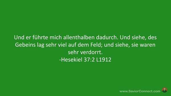 Und er führte mich allenthalben dadurch. Und siehe, des Gebeins lag sehr viel auf dem Feld; und siehe, sie waren sehr verdorrt. -Hesekiel 37:2 L1912
