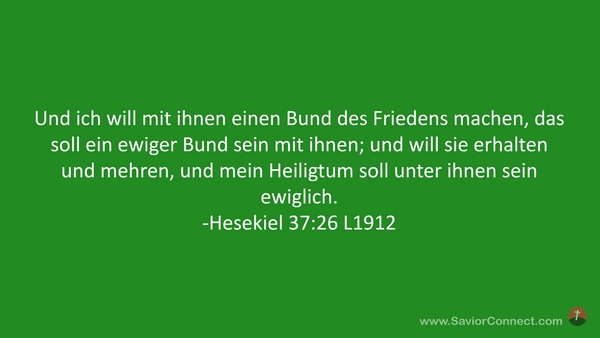 Und ich will mit ihnen einen Bund des Friedens machen, das soll ein ewiger Bund sein mit ihnen; und will sie erhalten und mehren, und mein Heiligtum soll unter ihnen sein ewiglich. -Hesekiel 37:26 L1912