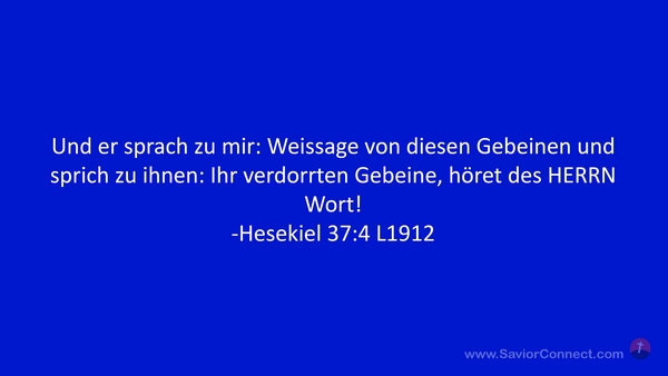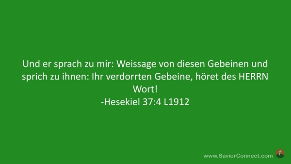 Und er sprach zu mir: Weissage von diesen Gebeinen und sprich zu ihnen: Ihr verdorrten Gebeine, höret des HERRN Wort! -Hesekiel 37:4 L1912
