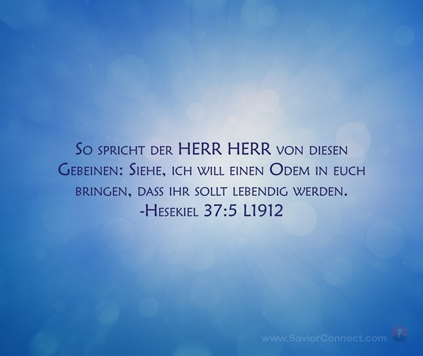 So spricht der HERR HERR von diesen Gebeinen: Siehe, ich will einen Odem in euch bringen, daß ihr sollt lebendig werden. -Hesekiel 37:5 L1912