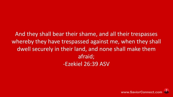 Sie aber werden ihre Schmach und alle ihre Sünde, damit sie sich an mir versündigt haben, tragen, wenn sie nun sicher in ihrem Lande wohnen, daß sie niemand schrecke, -Hesekiel 39:26 L1912