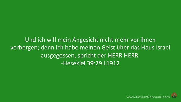 Und ich will mein Angesicht nicht mehr vor ihnen verbergen; denn ich habe meinen Geist über das Haus Israel ausgegossen, spricht der HERR HERR. -Hesekiel 39:29 L1912