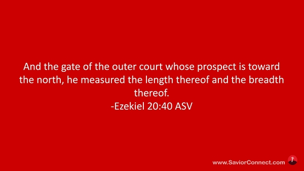 Er maß auch das Tor, so gegen Mitternacht lag, am äußern Vorhof, nach der Länge und Breite. -Hesekiel 40:20 L1912