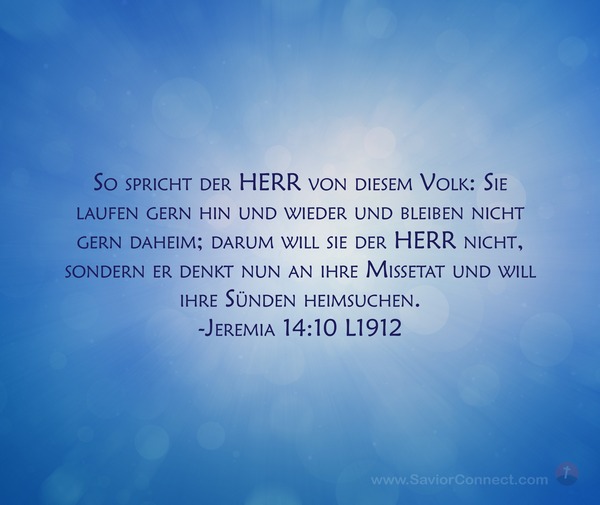 So spricht der HERR von diesem Volk: Sie laufen gern hin und wieder und bleiben nicht gern daheim; darum will sie der HERR nicht, sondern er denkt nun an ihre Missetat und will ihre Sünden heimsuchen. -Jeremia 14:10 L1912