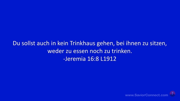 Du sollst auch in kein Trinkhaus gehen, bei ihnen zu sitzen, weder zu essen noch zu trinken. -Jeremia 16:8 L1912