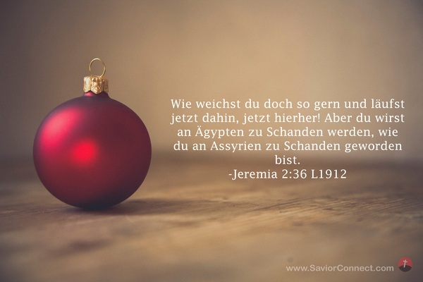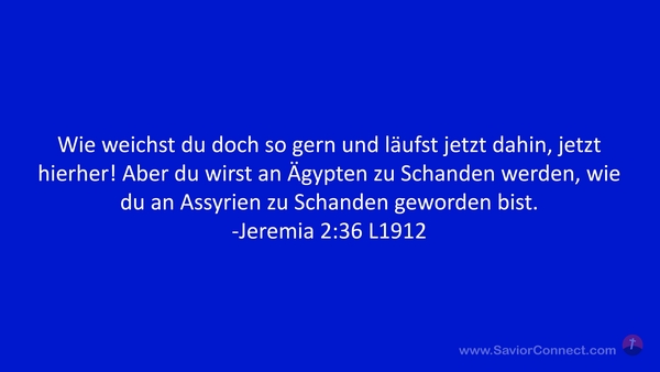 Wie weichst du doch so gern und läufst jetzt dahin, jetzt hierher! Aber du wirst an Ägypten zu Schanden werden, wie du an Assyrien zu Schanden geworden bist. -Jeremia 2:36 L1912