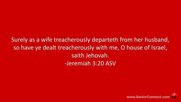 Aber das Haus Israel achtete mich nicht, gleichwie ein Weib ihren Buhlen nicht mehr achtet, spricht der HERR. -Jeremia 3:20 L1912