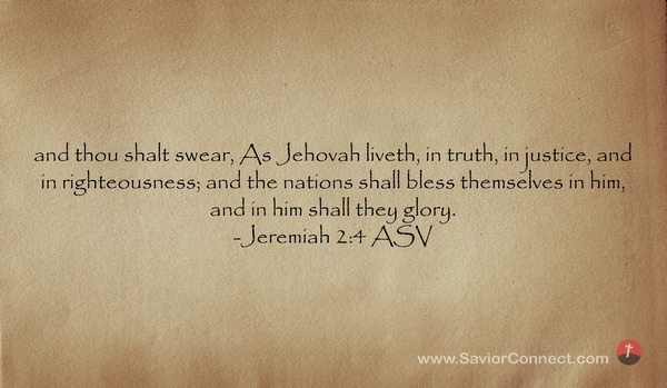 Alsdann wirst du ohne Heuchelei recht und heilig schwören: So wahr der HERR lebt! und die Heiden werden in ihm gesegnet werden und sich sein rühmen. -Jeremia 4:2 L1912