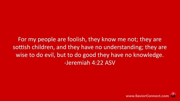 Aber mein Volk ist toll, und sie glauben mir nicht; töricht sind sie und achten's nicht. Weise sind sie genug, Übles zu tun; aber wohltun wollen sie nicht lernen. -Jeremia 4:22 L1912