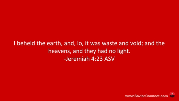 Ich schaute das Land an, siehe, das war wüst und öde, und den Himmel, und er war finster. -Jeremia 4:23 L1912