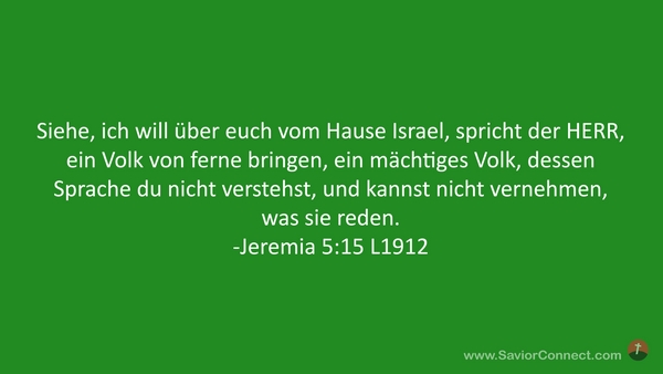 Siehe, ich will über euch vom Hause Israel, spricht der HERR, ein Volk von ferne bringen, ein mächtiges Volk, dessen Sprache du nicht verstehst, und kannst nicht vernehmen, was sie reden. -Jeremia 5:15 L1912