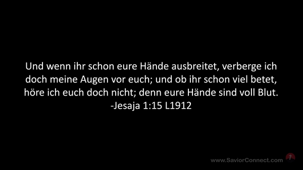 Und wenn ihr schon eure Hände ausbreitet, verberge ich doch meine Augen vor euch; und ob ihr schon viel betet, höre ich euch doch nicht; denn eure Hände sind voll Blut. -Jesaja 1:15 L1912
