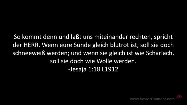 So kommt denn und laßt uns miteinander rechten, spricht der HERR. Wenn eure Sünde gleich blutrot ist, soll sie doch schneeweiß werden; und wenn sie gleich ist wie Scharlach, soll sie doch wie Wolle werden. -Jesaja 1:18 L1912