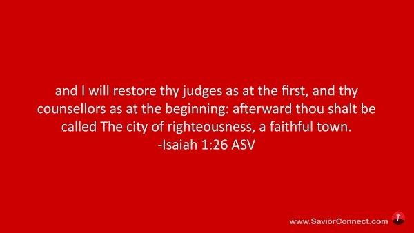 und dir wieder Richter geben, wie zuvor waren, und Ratsherren wie im Anfang. Alsdann wirst du eine Stadt der Gerechtigkeit und eine fromme Stadt heißen. -Jesaja 1:26 L1912