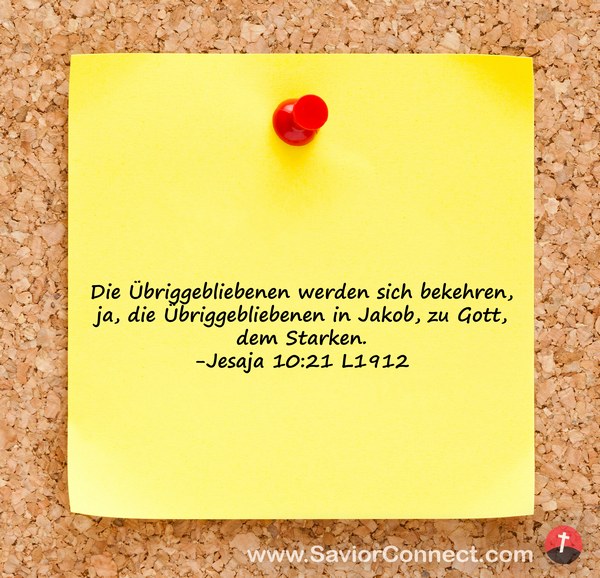 Die Übriggebliebenen werden sich bekehren, ja, die Übriggebliebenen in Jakob, zu Gott, dem Starken. -Jesaja 10:21 L1912