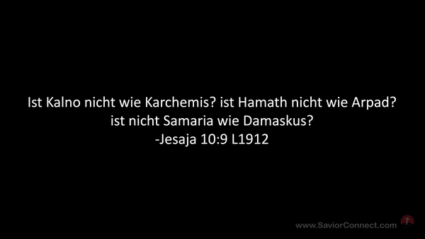 Ist Kalno nicht wie Karchemis? ist Hamath nicht wie Arpad? ist nicht Samaria wie Damaskus? -Jesaja 10:9 L1912