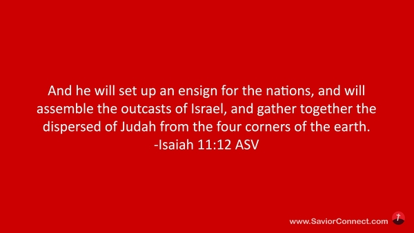 und wird ein Panier unter die Heiden aufwerfen und zusammenbringen die Verjagten Israels und die Zerstreuten aus Juda zuhauf führen von den vier Enden des Erdreichs; -Jesaja 11:12 L1912