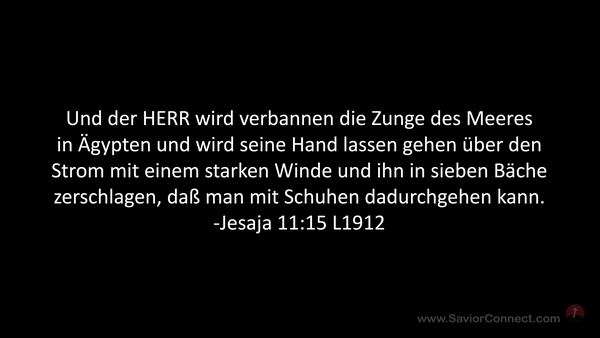 Und der HERR wird verbannen die Zunge des Meeres in Ägypten und wird seine Hand lassen gehen über den Strom mit einem starken Winde und ihn in sieben Bäche zerschlagen, daß man mit Schuhen dadurchgehen kann. -Jesaja 11:15 L1912