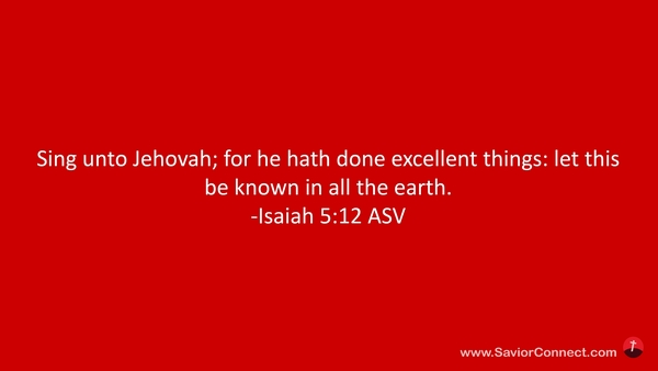 Lobsinget dem HERRN, denn er hat sich herrlich bewiesen; solches sei kund in allen Landen. -Jesaja 12:5 L1912