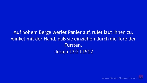 Auf hohem Berge werfet Panier auf, rufet laut ihnen zu, winket mit der Hand, daß sie einziehen durch die Tore der Fürsten. -Jesaja 13:2 L1912