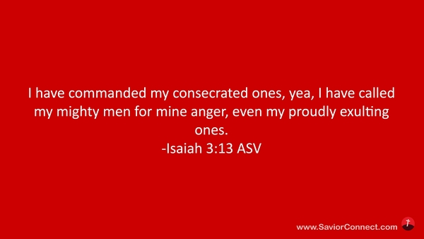 Ich habe meine Geheiligten geboten und meine Starken gerufen zu meinem Zorn, die fröhlich sind in meiner Herrlichkeit. -Jesaja 13:3 L1912