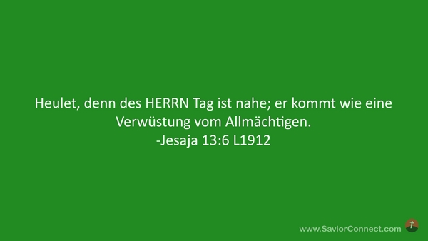 Heulet, denn des HERRN Tag ist nahe; er kommt wie eine Verwüstung vom Allmächtigen. -Jesaja 13:6 L1912