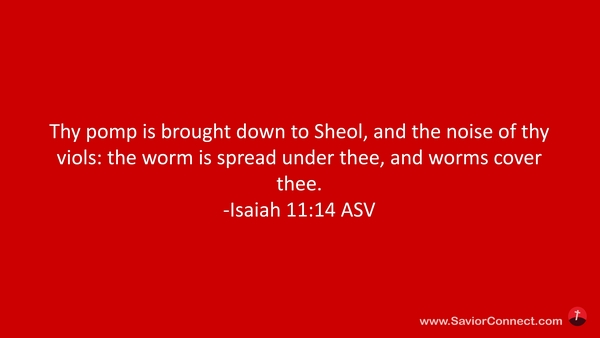Deine Pracht ist herunter in die Hölle gefahren samt dem Klange deiner Harfen. Maden werden dein Bett sein und Würmer deine Decke. -Jesaja 14:11 L1912
