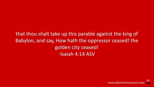 so wirst du solch ein Lied anheben wider den König von Babel und sagen: Wie ist's mit dem Dränger so gar aus, und der Zins hat ein Ende! -Jesaja 14:4 L1912