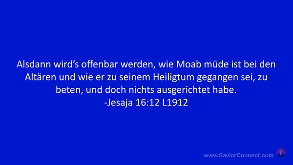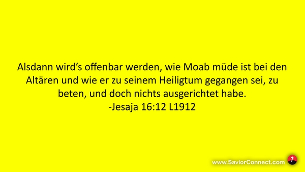 Alsdann wird's offenbar werden, wie Moab müde ist bei den Altären und wie er zu seinem Heiligtum gegangen sei, zu beten, und doch nichts ausgerichtet habe. -Jesaja 16:12 L1912