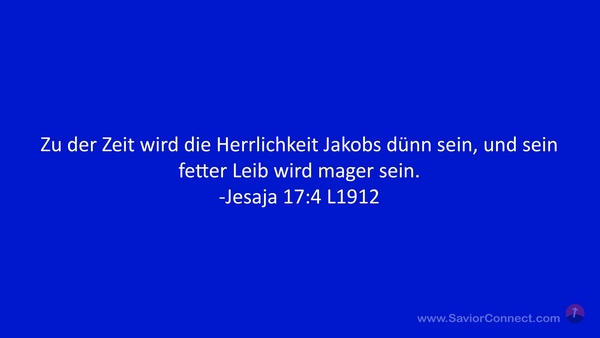 Zu der Zeit wird die Herrlichkeit Jakobs dünn sein, und sein fetter Leib wird mager sein. -Jesaja 17:4 L1912